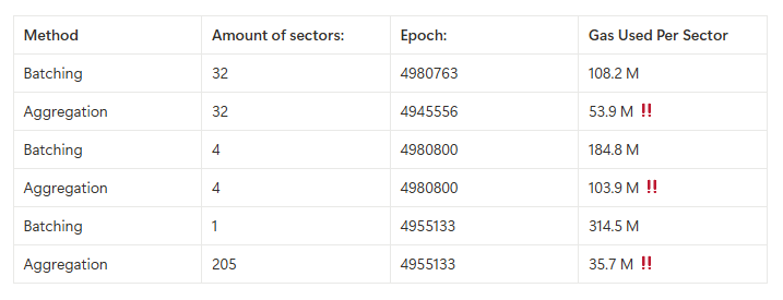 The difference is striking. Storage providers using aggregation are reducing their per-sector gas significantly compared to storage providers that are committing sectors with batching. This translates to substantial FIL savings and helps free up valuable chain bandwidth for the entire network.